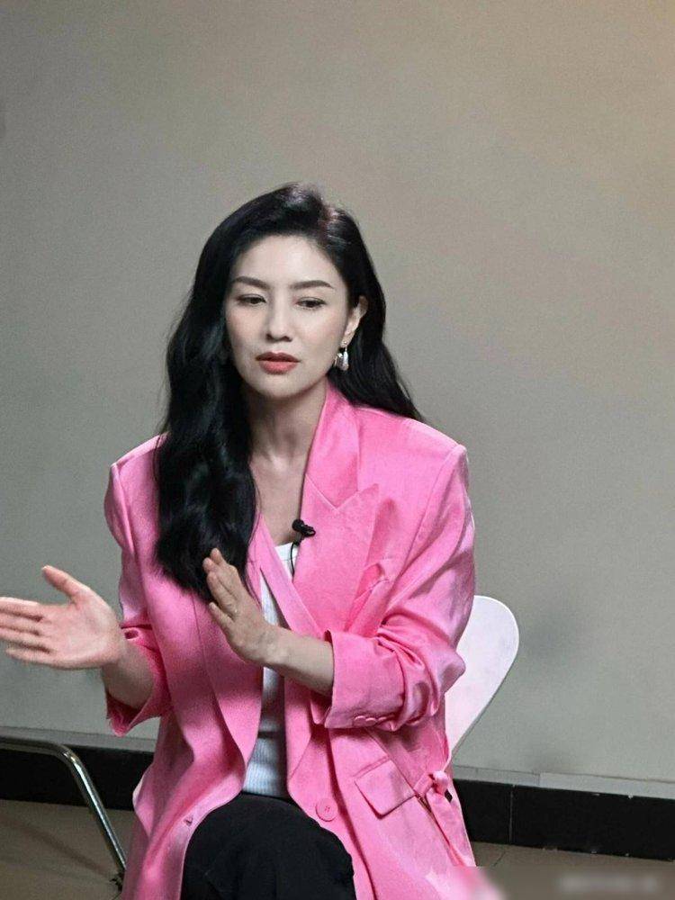 其实好多中年女人对亮颜色的恐惧,不是怕显老,是怕“穿不对”——要么穿成艳俗的“装嫩”,要么穿成没气色的“显旧”。但胡可这套粉色西装真的给了个完美示范:选的是柔雾感的粉,饱和度低得像加了层滤镜,配件简单的白色背心压下粉色的甜,再搭条垂坠感强的黑阔腿裤,甜酷刚好中和,既保留了粉色的少女感,又用黑色撑起了中年人的利落,完全没有“刻意”的感觉。要是换件艳粉或者配个花内搭,估计就踩雷了,她这搭配厉害在“克制”——甜不多加,酷不少给,刚好卡在舒服的点上。
